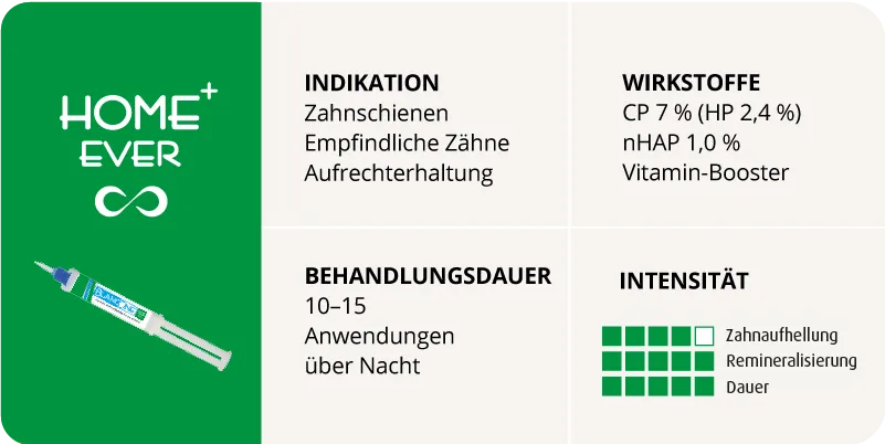BlancOne HOME+ EVER ist eine Tooth Rejuvenation Behandlung, die Zahnbehandlungen ergänzt, indem sie den Biofilm auflöst, den Zahnschmelz repariert, die Empfindlichkeit beseitigt und einem Vergilben der Zähne vorbeugt.